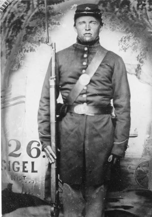 Vojín John Held z kumpanie D 26. wisconsinského pluku
